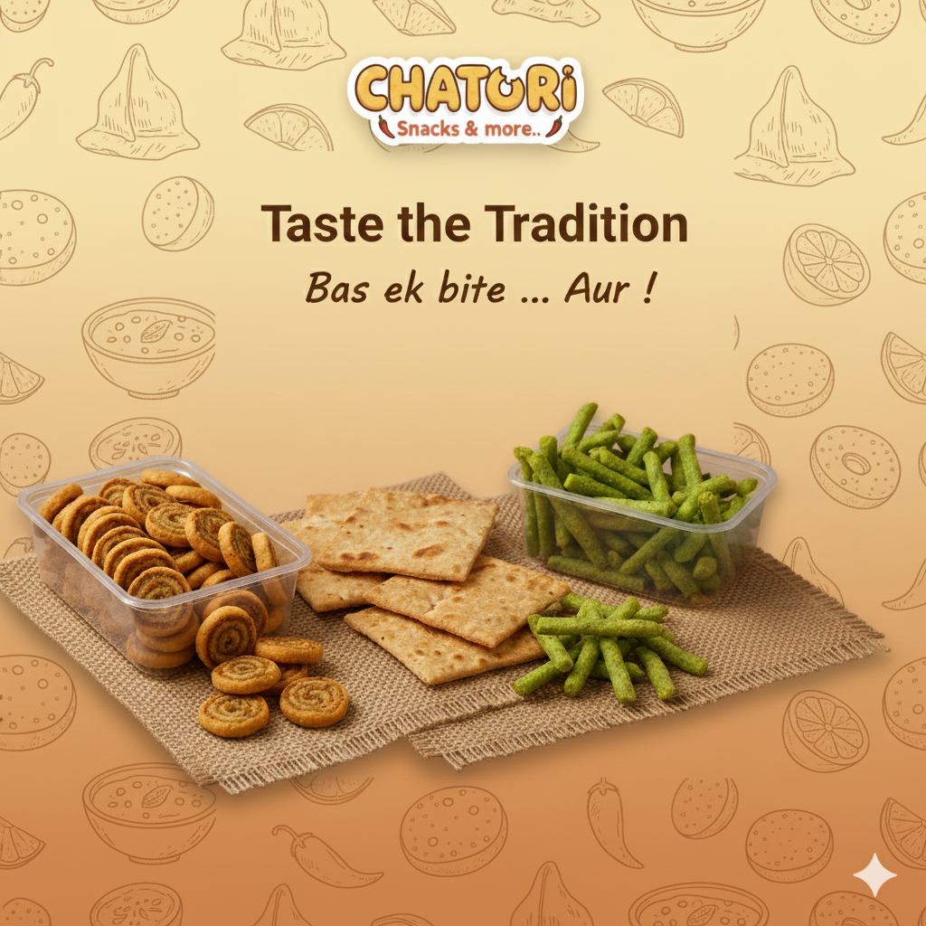 Chatori isn’t born in factories it’s made in the kitchens of homemakers who cook with the same care their mothers once did. No shortcuts, no preservatives just pure love packed into every khakhra, sev, and spice.